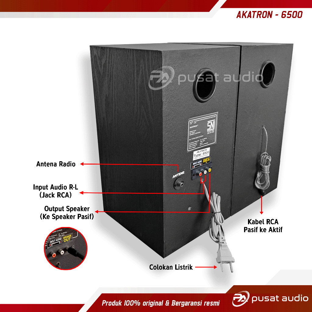 Speaker aktif AKATRON karaoke Bluetooth subwoofer BASS MENGGELEGAR sound 6 inch inchi TYPE 6500