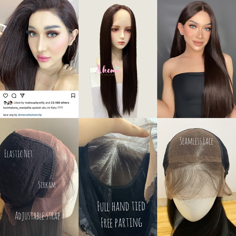 FULL LACE WIG AKEMI - LURUS NATURAL 70cm [ Full Hand Tied Lace Wig Akemi Hair by Marcellashairclip rambut palsu wanita p