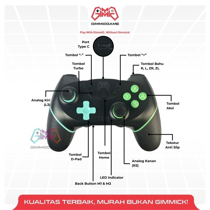Stick Stik Wireless Pro Controller Nintendo Switch Lite OLED Laptop N-SL Hitam
