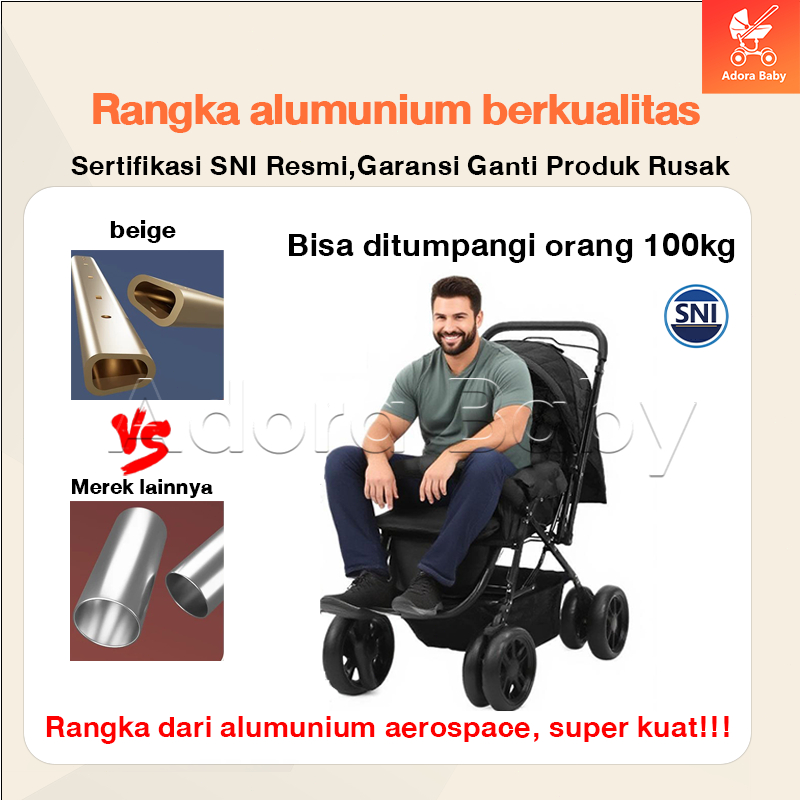 BEIGE Stroller Bayi Lipat Travelling Ringan Dan Mudah Dibawa 2 arah Usia 0-8tahun