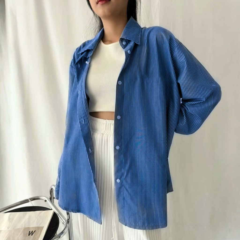 DEEPA Stripe Shirt - Kemeja Salur Wanita - Korean Stripe Katun