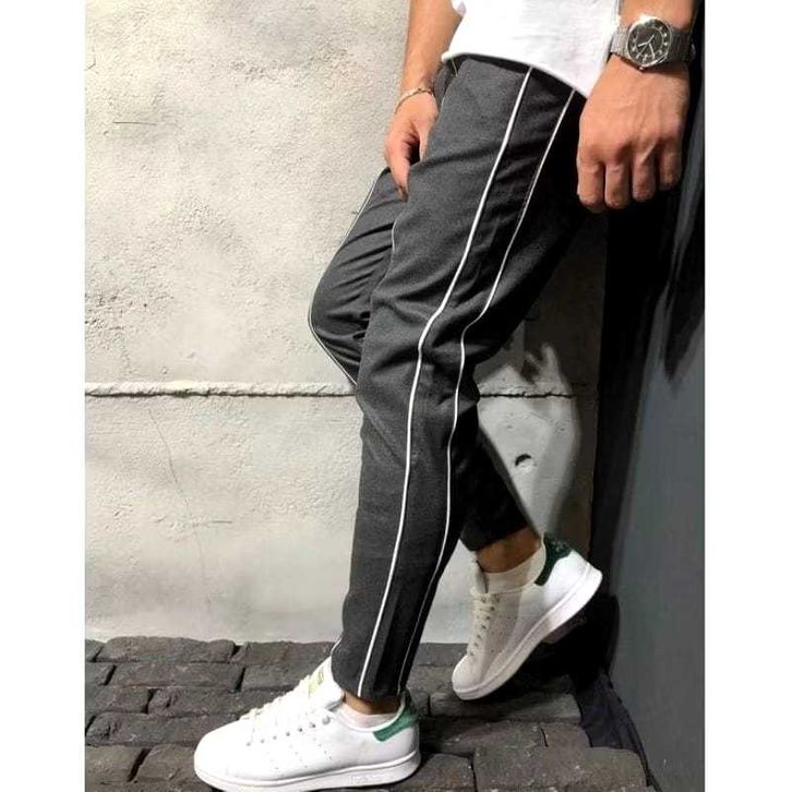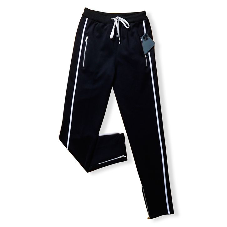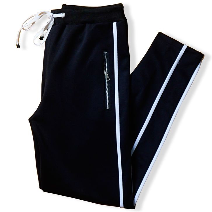 VCRL Celana Pria Hypebeast Hitam List Putih Simple Bahan Scuba Streach Premium Slim Fit Korean Style