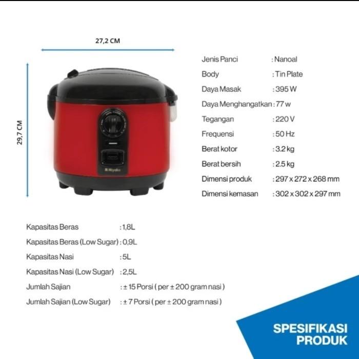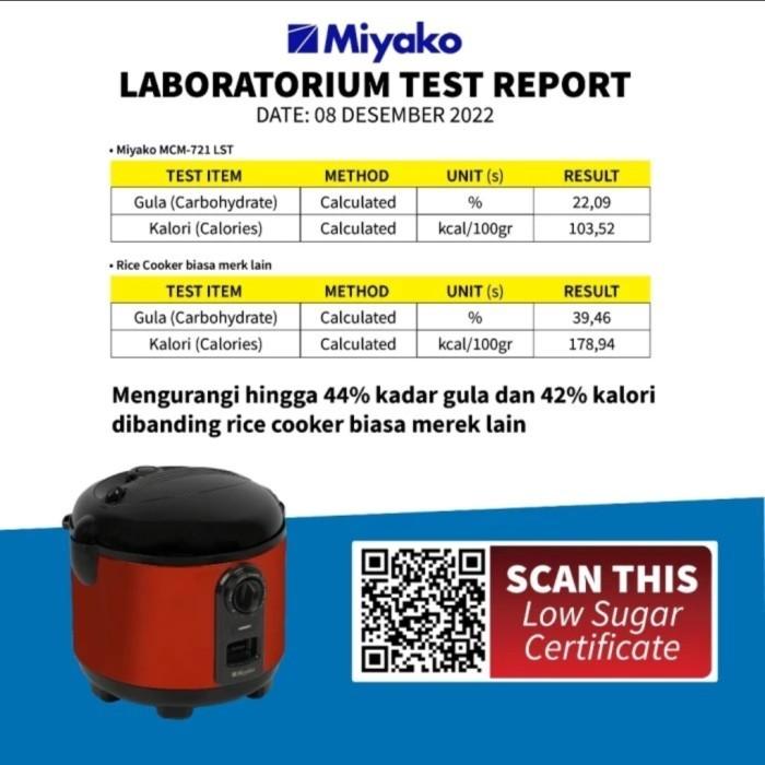 Miyako MCM 721 LST Rice Cooker Low Carbo 1.8L MCM721LST - RED magic com magicom penanak nasi
