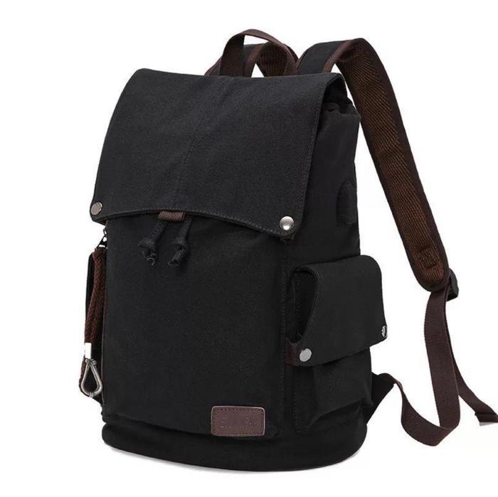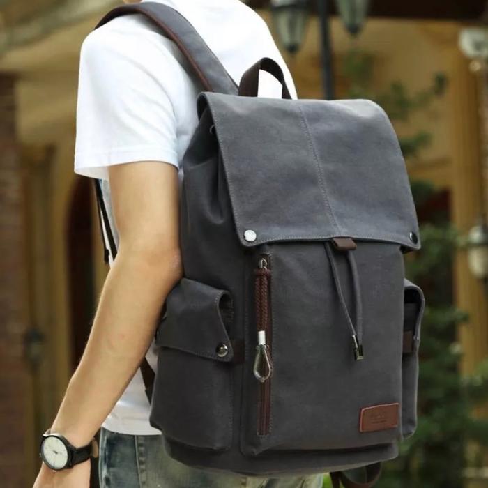 Generous Bag Backpack Tas Ransel Kanvas 1 Pria Hitam Wanita - Abu Tua