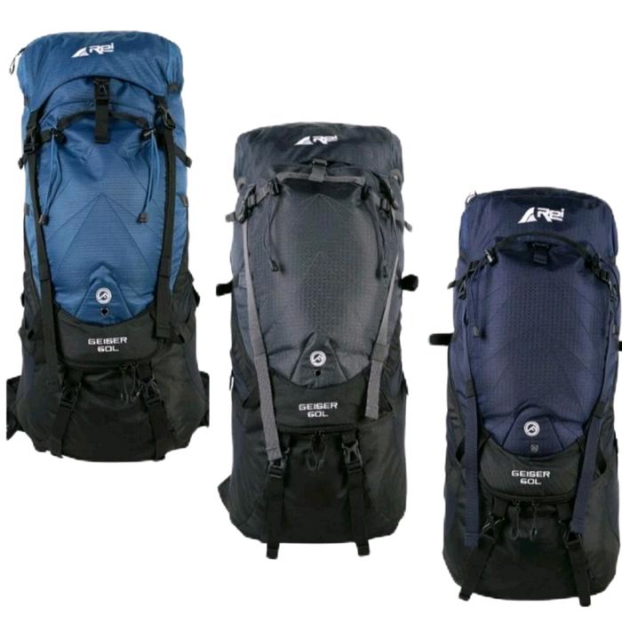 Tas gunung original carrier arei Geiser 60L dapat Raincover arei outdoorgear - navy
