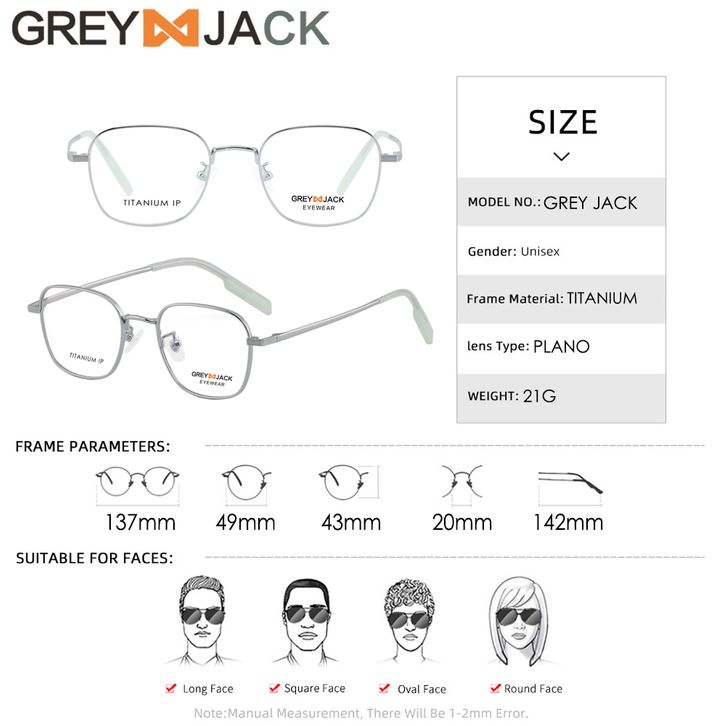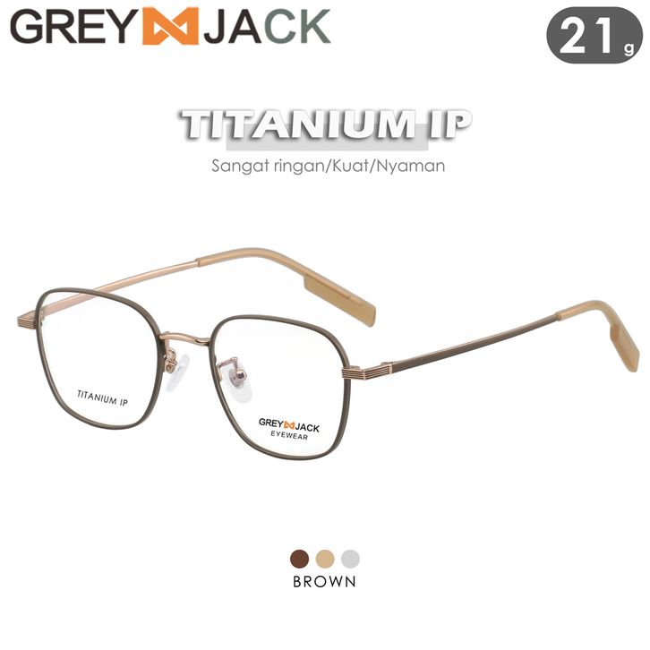 Grey Jack Frame Kacamata Bahan Titanium M0Del Kotak Ringan Simple Look Classy Bisa Minus Antiradiasi Blueray Photocromi