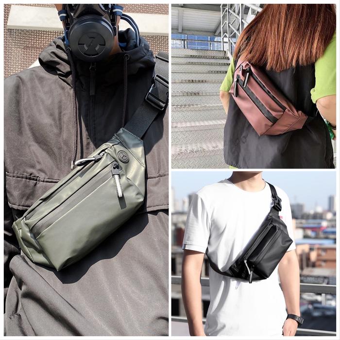 Tas Pinggang Pria Waterproof ORIGINAL Bum Bag Waist Bag cowok tas dada Waistbag - Dark Black