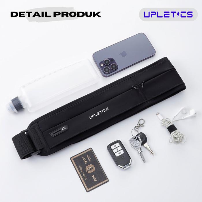 Upletics 3 Pocket Running Waist Bag | Tas Pinggang Olahraga Jogging Lari Marathon Sepeda Outdoor - Black S Tanpa Botol