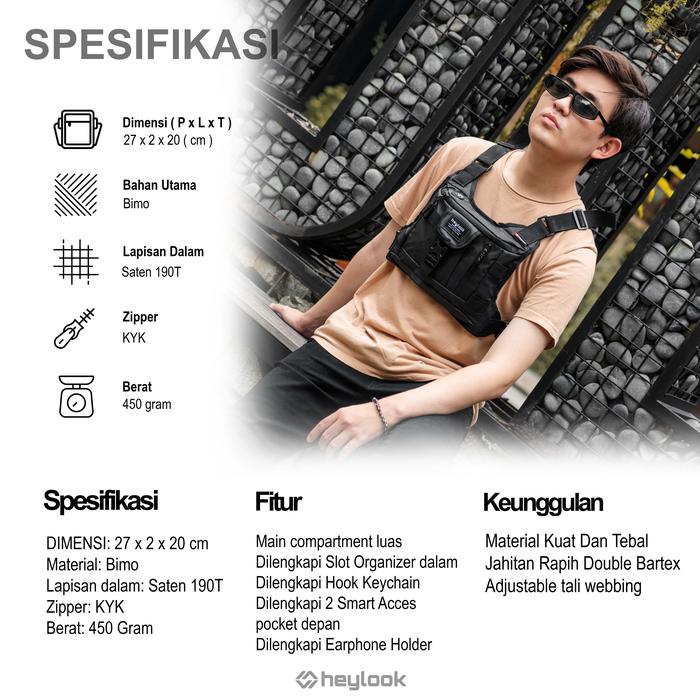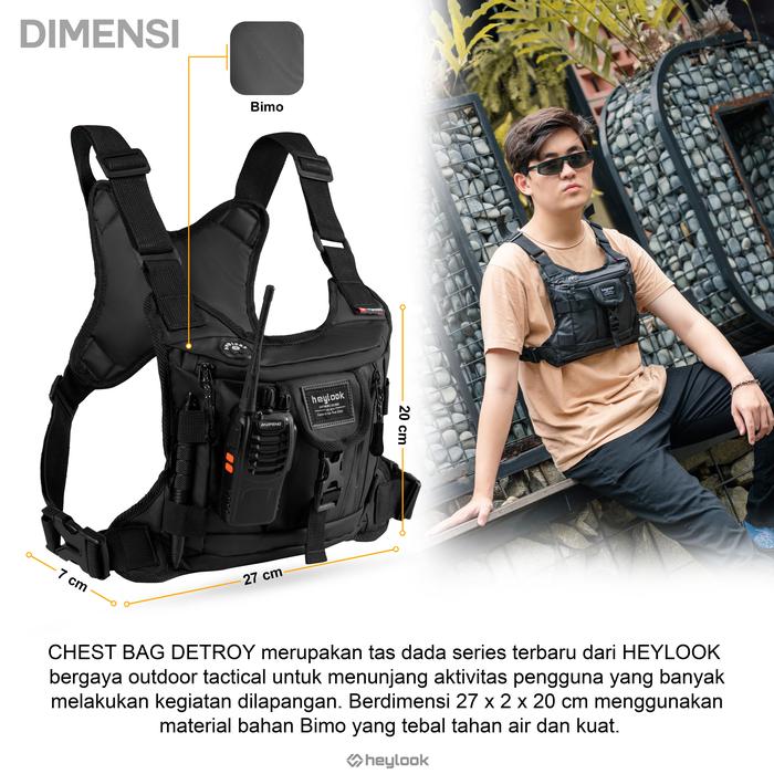 Chest Bag DETROY 2.0 Waterproof Anti Air Tas Dada Outdoor Tactical Rig Bag Terbaru Pria Pinggang Waistbag Cowo - hitam