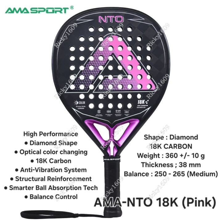 RAKET PADEL AMA NTO 18K Pink (Shape DIAMOND - 18K CARBON + Optical color changing) ORIGINAL AMA SPORT