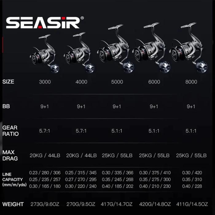Seasir Contra Max Reel 25KG Drag Saltwater Saltwater All Metal Reel Spinning Pancing Roda