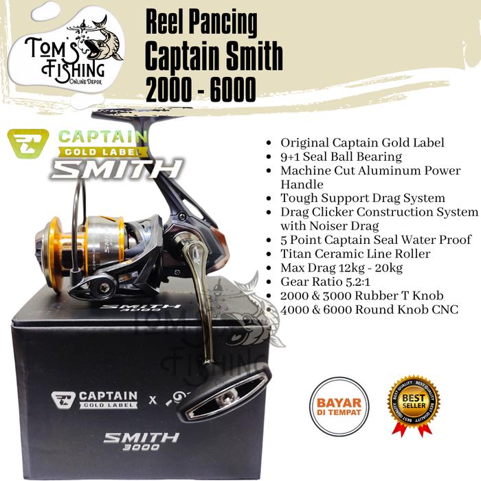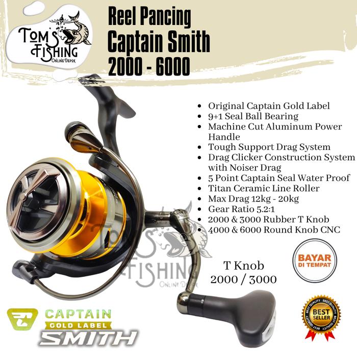 Reel Pancing CAPTAIN SMITH 2000 - 6000 Gold Label (9+1 Bearing) Power Handle Murah - Toms Fishing