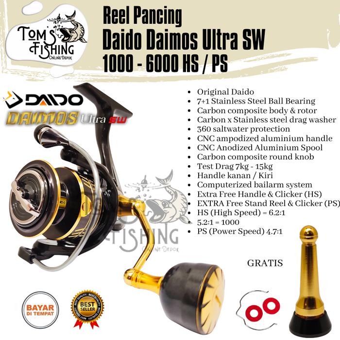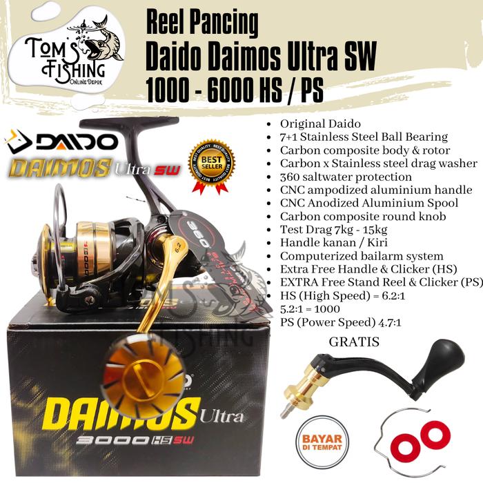 Reel pancing Daido Daimos Ultra SW 1000 - 6000 HS / PS (7+1 Bearing) High Speed Saltwater Murah -