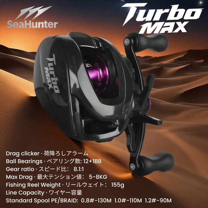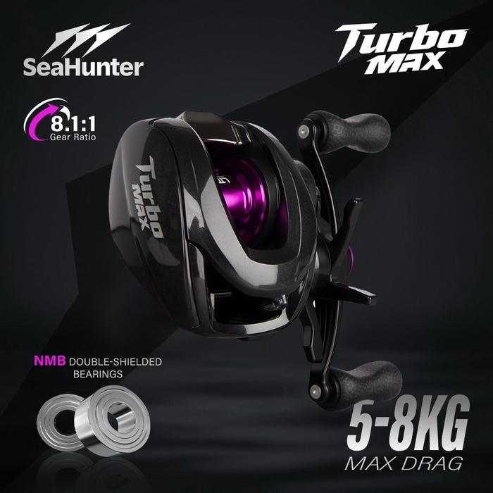 OFFICIAL SeaHunter Turbo MAX 8.1:1 High Gear Ratio BC Reel Pancing,Drag Clicker, 12+1 Ball Bearings