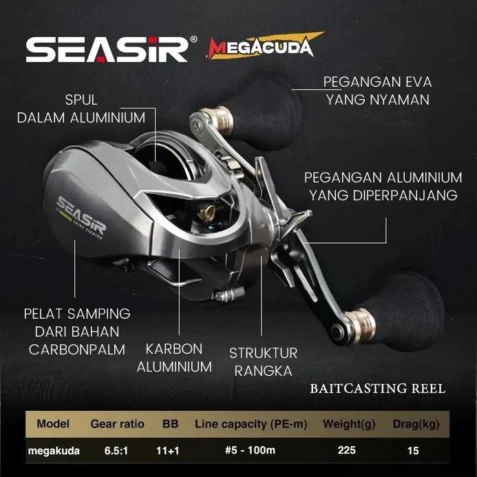 SEASIR MEGACUDA Reel Pancing Baitcasting ALL METAL Saltwater Reel BC Rangka Aluminium Logam Sisi