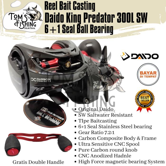 Reel BC BaitCasting Daido KING Predator SW 300 Kanan / Kiri (6+1 Bearing) 7.2:1 Drag 15kg Murah -