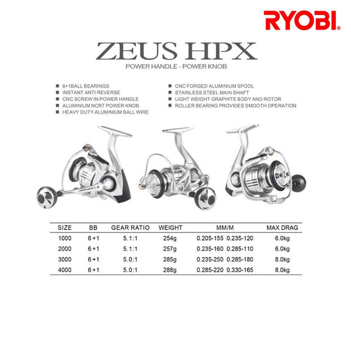 RYOBI ZEUS HPX Power Handle Spinning Reel Kerekan Metal Spool