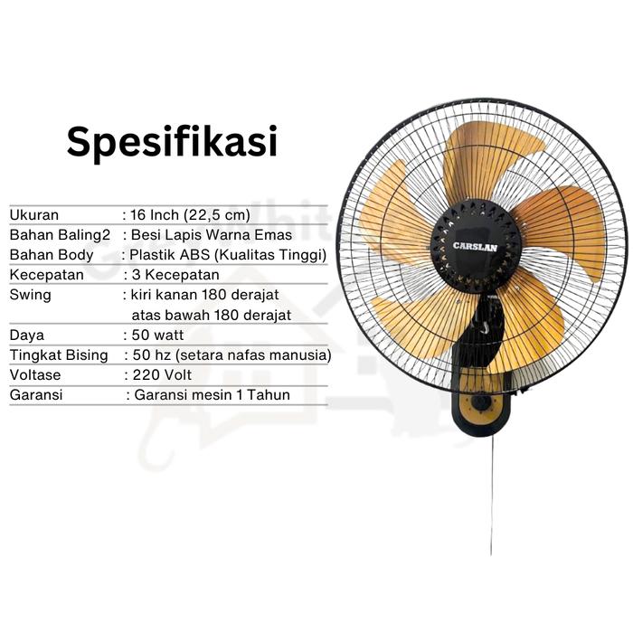 Kipas Dinding Besi Tornado JUMBO 16 Inch Alumunium Emas Timer Kuningan Bergaransi - 16 Inch 5 Daun Besi