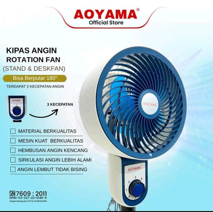 KIPAS ANGIN ROTATION FAN AOYAMA 2 IN 1 / KIPAS BERDIRI DAN KIPAS ANGIN MEJA/ KIPAS ANGIN KENCANG