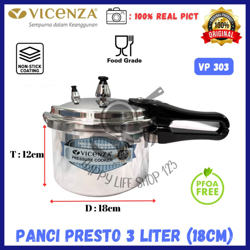 Panci Presto 3 Liter Vicenza / Presto 3 Liter Vicenza / Pressure Cooker 3 Liter Vicenza