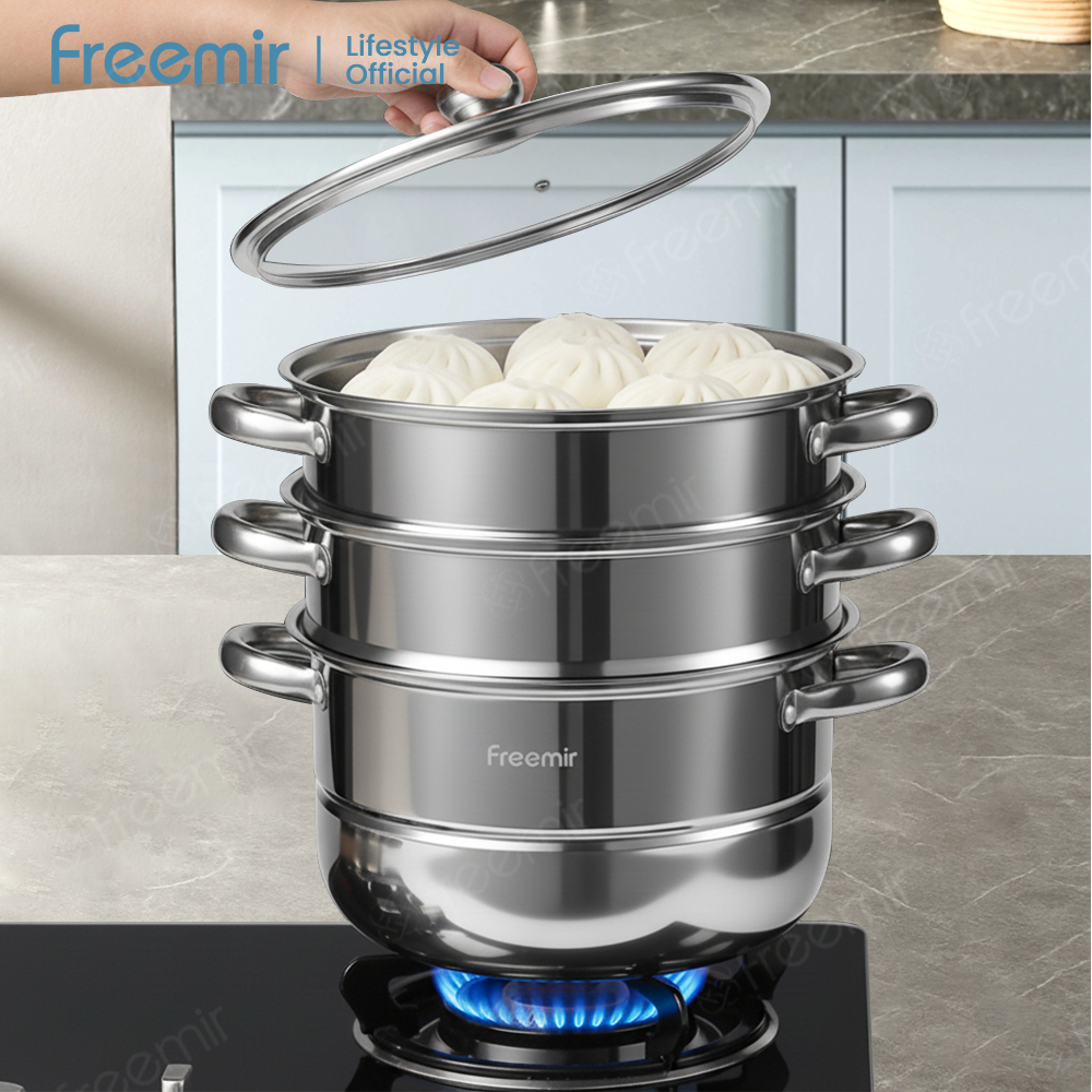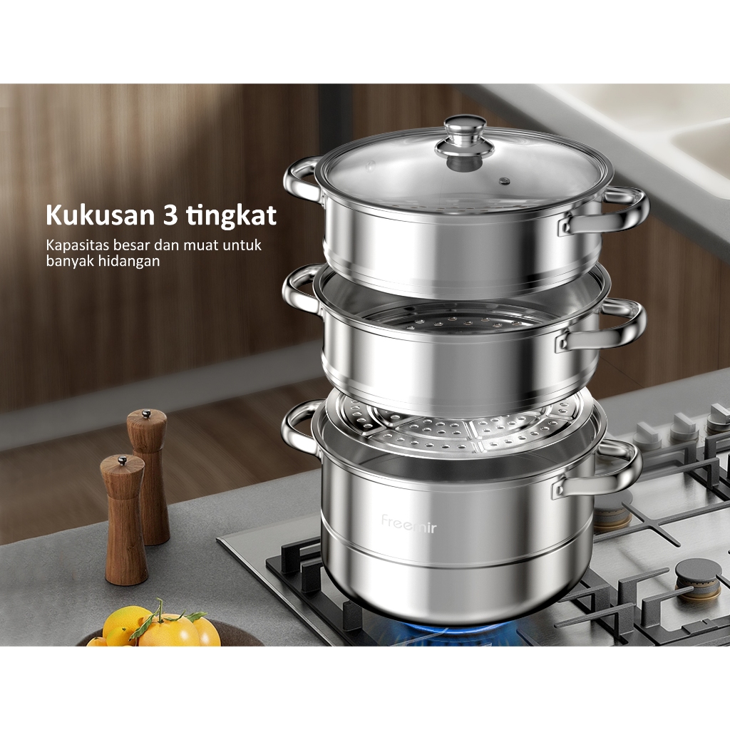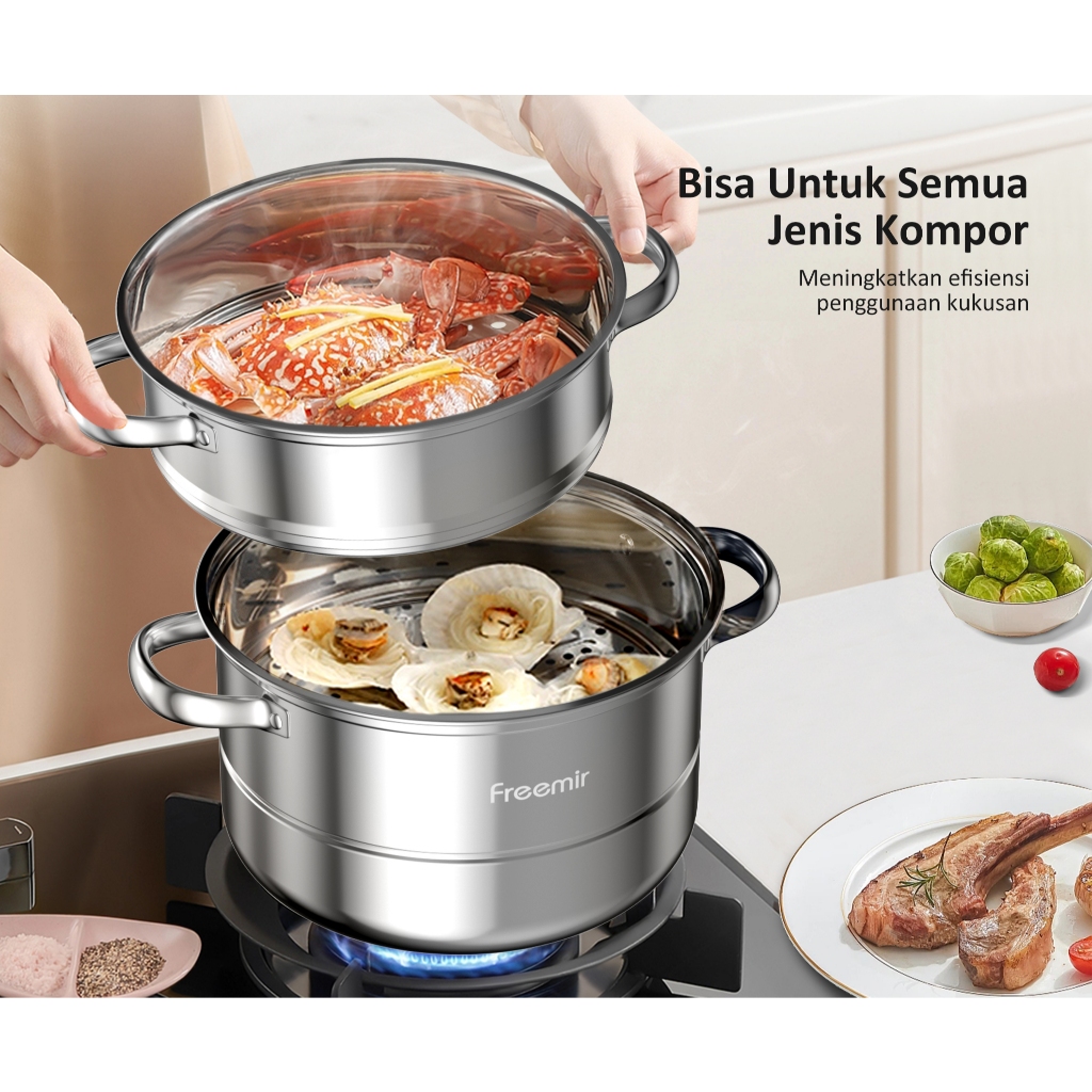 Panci Sup Kukus Stainless Steel 26Cm Dengan Tutup 2/3 Susun Cocok Untuk Mengukus Mie, Makanan Laut, Dan Nasi Pot Serbagu