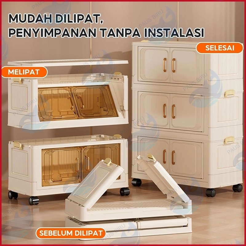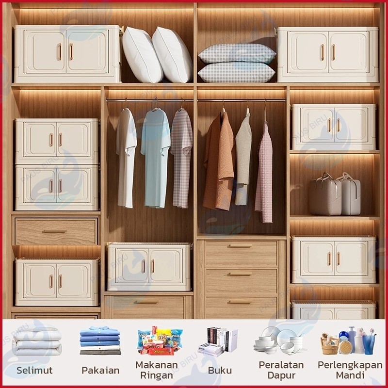 Paus Biru - Lemari Plastik Lipat Susun 50Cm – Kabinet Pakaian Serbaguna Anti Debu Minimalis