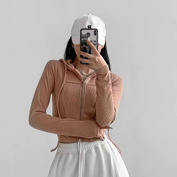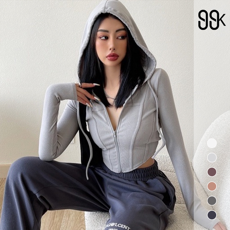 [Premium] Cropped Drawstring Full Zip Hoodie Sweatshirt 7444 (S/M/L)