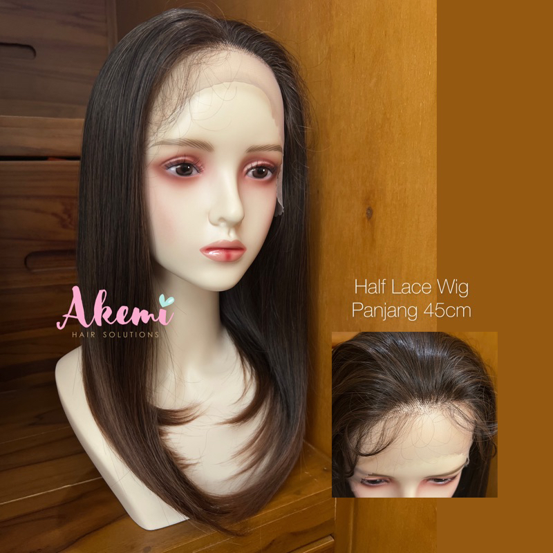 HALF LACE WIG AKEMI - LURUS MEDIUM 45cm [ rambut palsu wanita natural panjang dengan renda kain lace wig bebas belahan r
