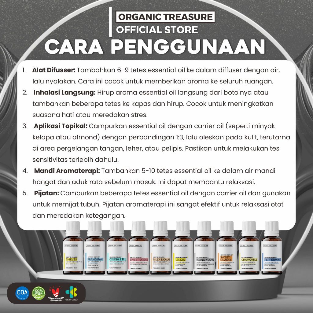 ORGANIC TREASURE - Paket Diffuser 500ML Aromatherapy FREE 4 Essential Oil Grade+ [ 1 YEAR GUARANTEE ]