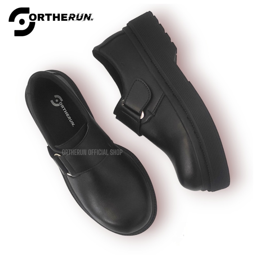 ORTHERUN - Sepatu Safety Wanita Slip On Hitam Ujung Besi Low Boots Wanita Sepatu Kerja Wanita Lapangan Industri Kitchen Anti Licin