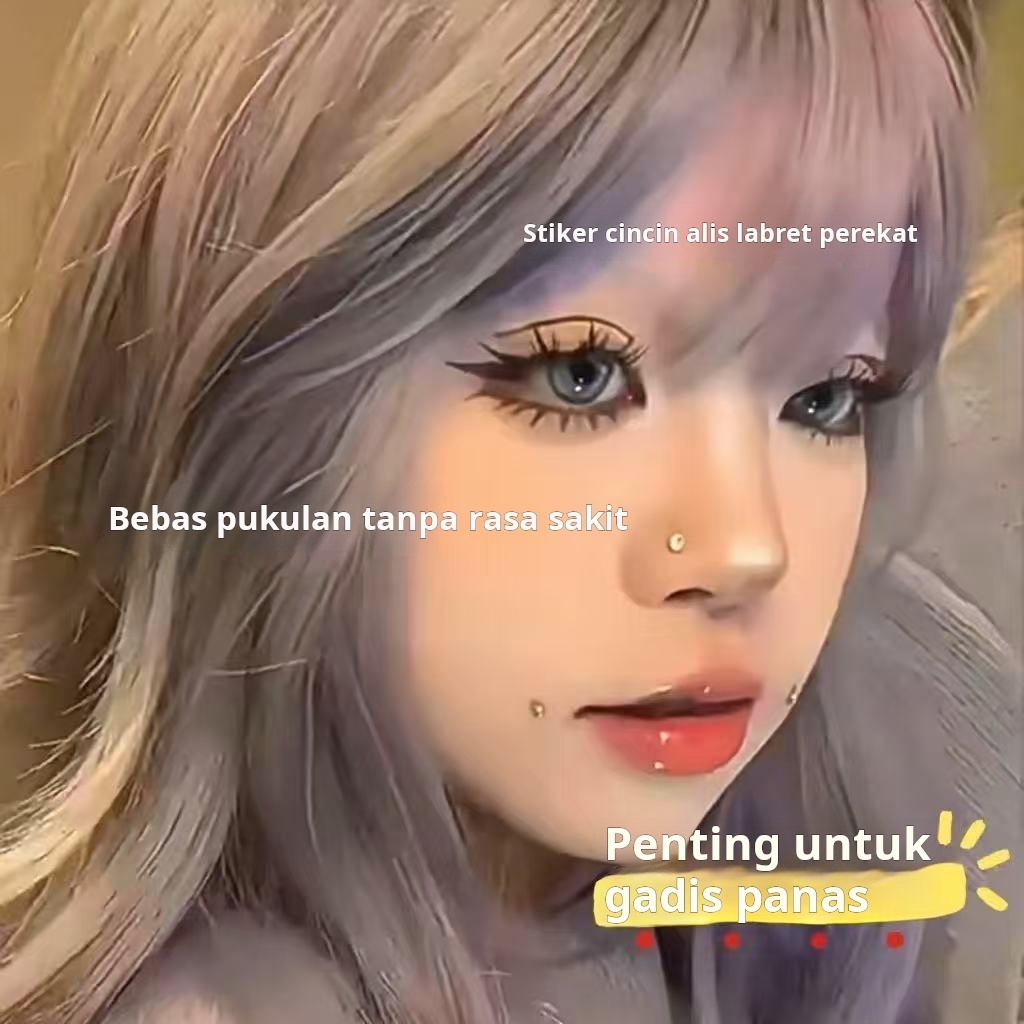 Stiker alis palsu dan tindik bibir berperekat. Tidak perlu pengeboran, tindik, atau riasan mata. Dapat diakan sebagai hi