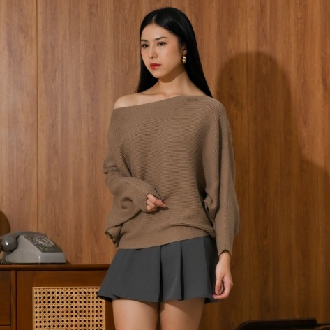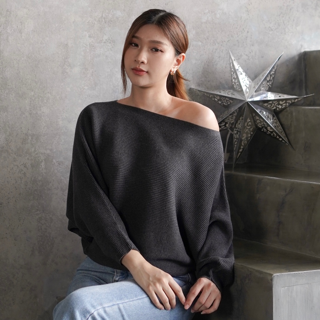 SUETERCLOTH - Amber Batwing Knit Top/Knit Top Wanita/Oversize sweater knit/Sabrina knit top/Atasan wanita sabrina