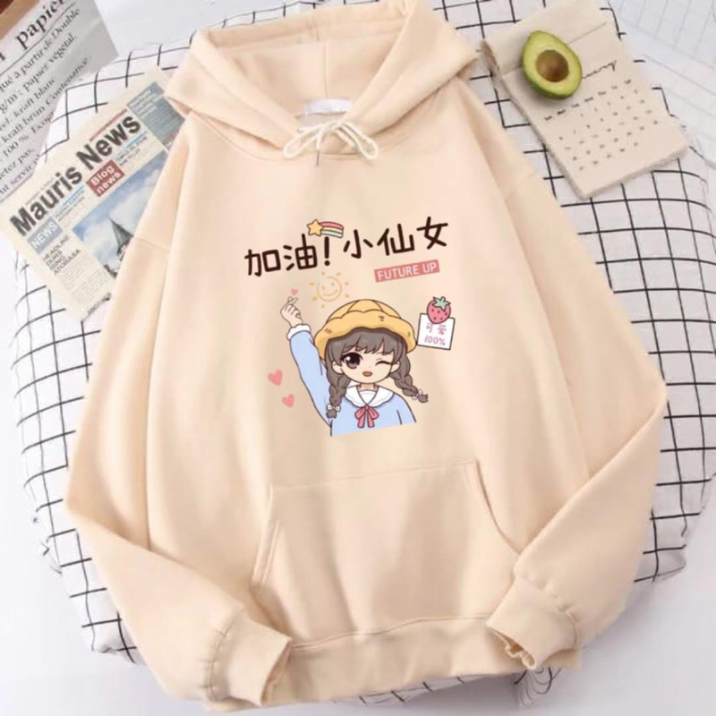 Hoodie Future UP Wanita Korean Style Fleece Unisex