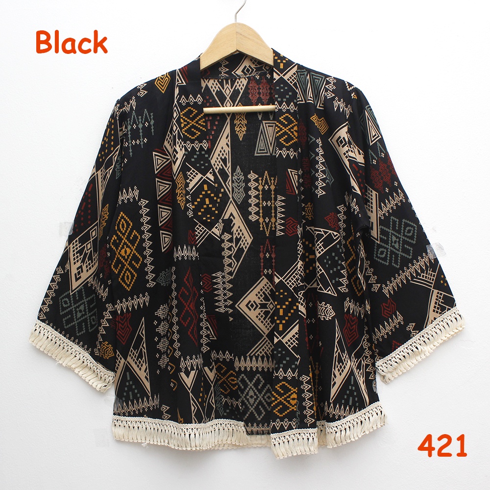 JakartaFashion cardigan outer katun motif batik rumbai kardigan bohemian etnic cantik boho tribal