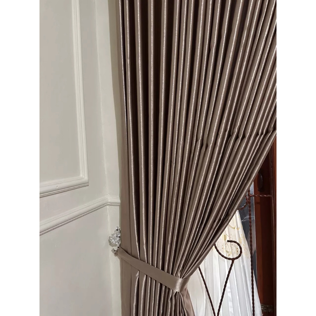 GARANSI KEPUASAN: Gorden Jendela Blackout Polos Glossy Lebar 6 7 8 9 10 12 15 Gelombang Tinggi 250Cm