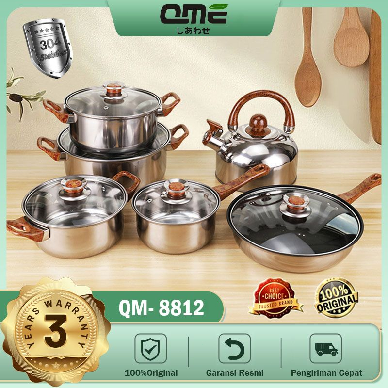 Qme Panci Set Stainless Steel Dengan 6 Pcs Dengan Teko Stainless Panci Serbaguna Isi