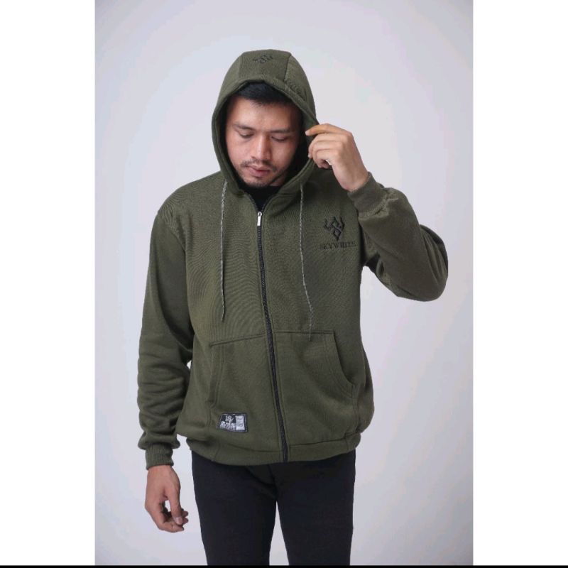 HOODIE ZIPPER SWEATER SKYWHITE BORDIR TIMBUL BAHAN GRAMASI 280 HALUS DAN TEBAL