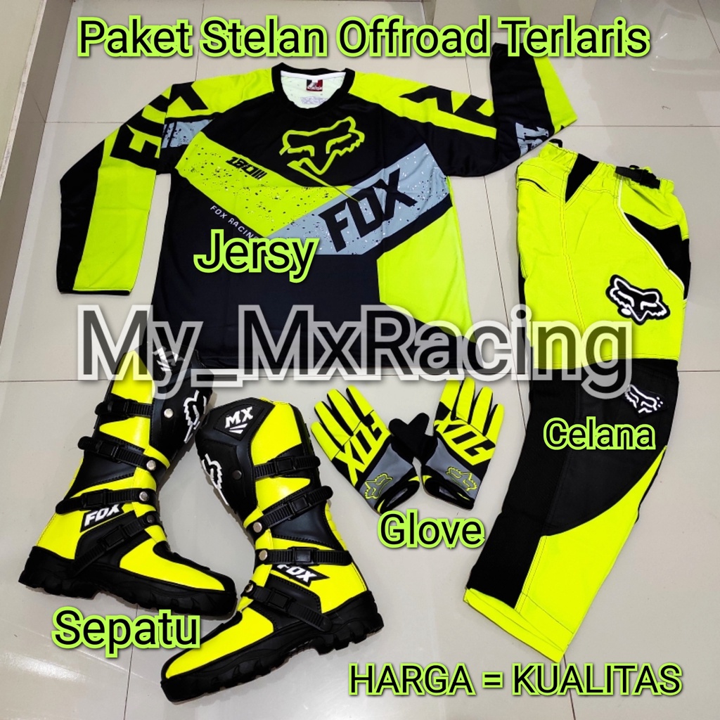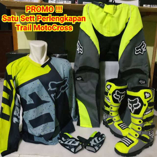 GRATIS CETAK NAMA & NOMOR sepatu cross trail satu sett perlengkapan offroad jersey sett celana sarung tangan glove bots trabas adventure