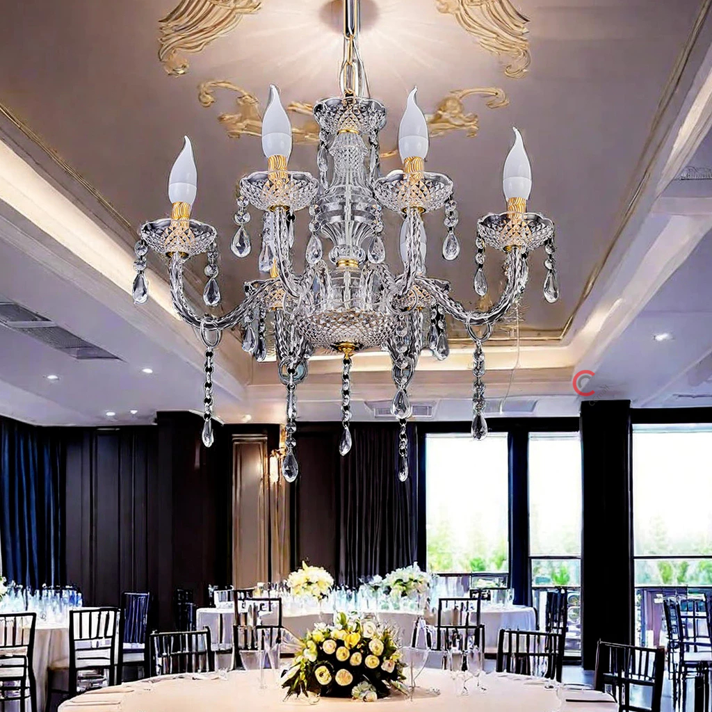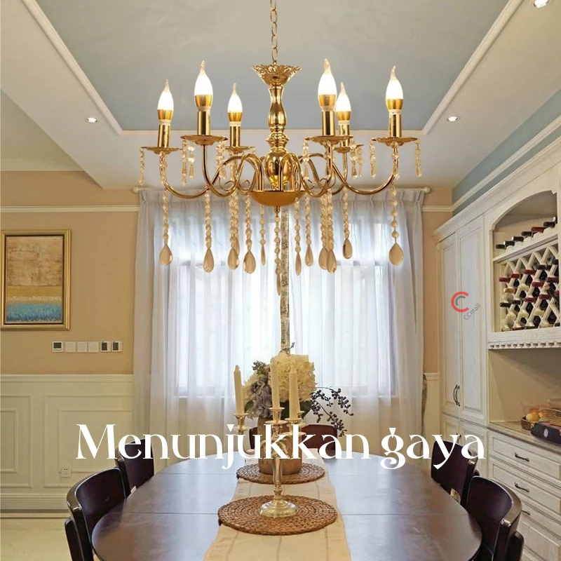 Ready Stock Lampu Gantung Kristal Akrilik Isi 6/8/8+4 Bohlam Termasuk Bohlam,Dekorasi Pelaminan Lampu Ruang Tamu Lampu T