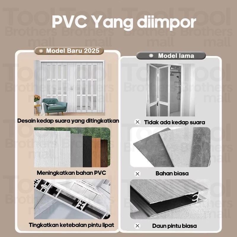 Reaim Pintu Lipat Pvc Folding Door Geser For Kamar Tidur Penyekat Ruangan Pintu Kamar Mandi Pvc