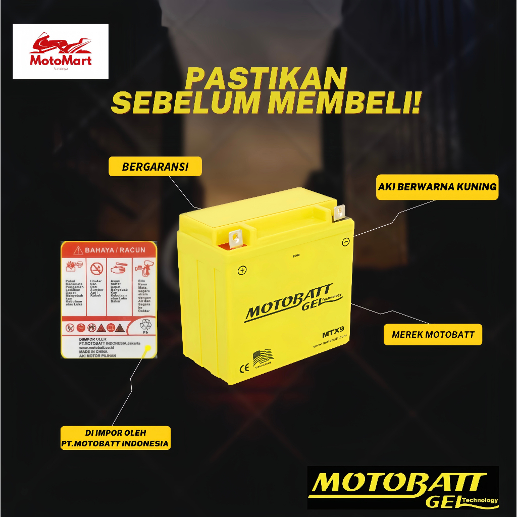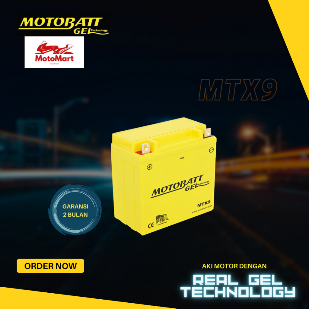 Motobatt Gel MTX9 TVS Apache 150 / SUZUKI Thunder 125 / 250 / BAJAJ PULSAR 180/200 - 9Ah (Garansi 2 Bulan)