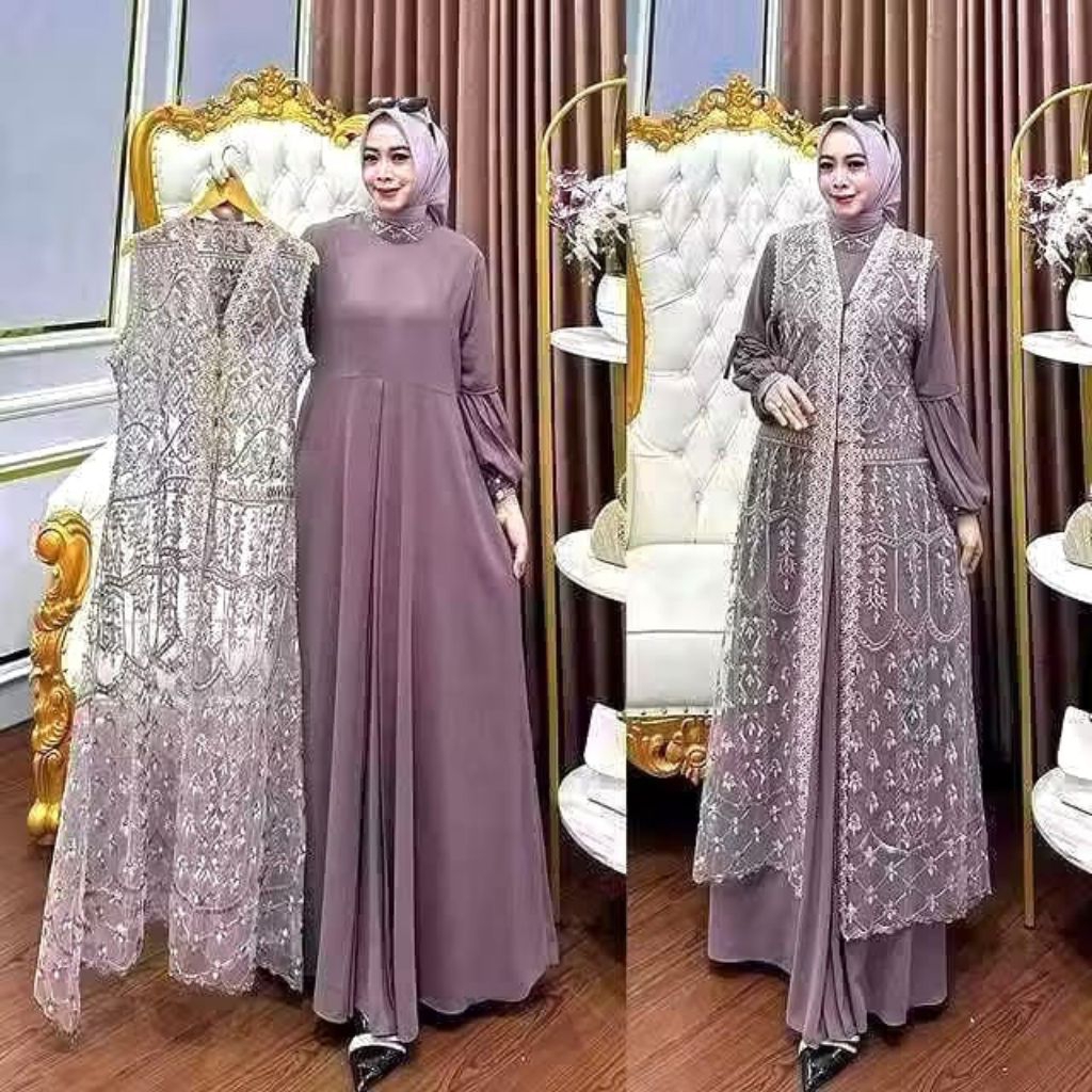 Gamis Wanita Dress Gamis Kondangan Terbaru 2026 Gamis Plus Outer Brokat Dress Kondangan Burgundy Mewah Dan Elegan