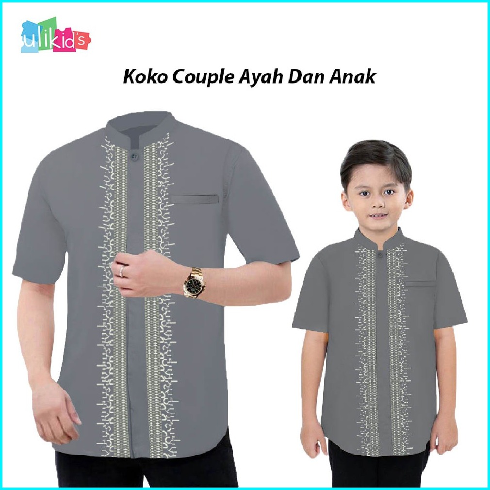 Ulikids Baju Koko Couple Lebaran Ayah Dan Anak Laki-laki Atasan Pria Dewasa Lengan Pendek Bordir Batik Premium Terkini D