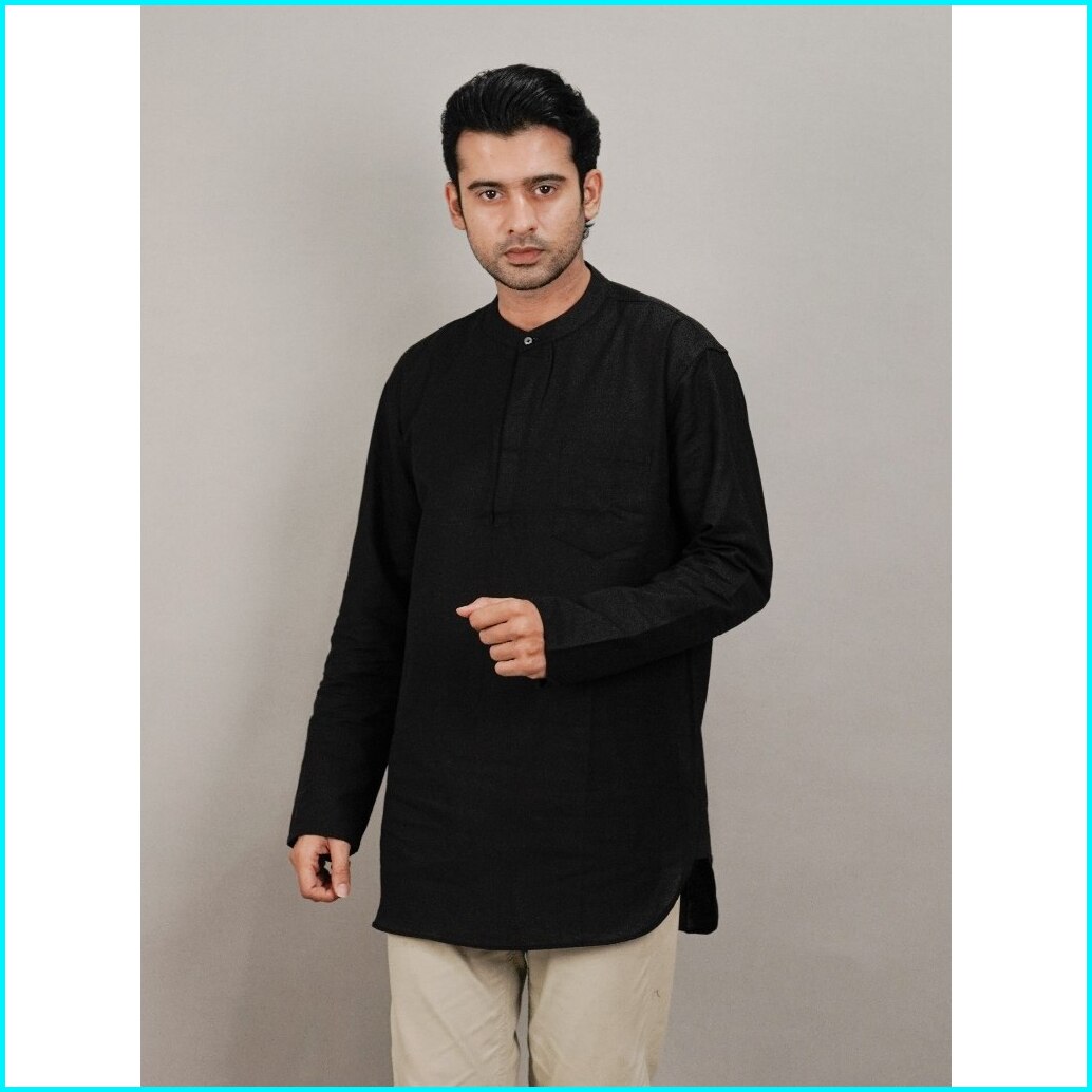 Swipe Up Kemeja Koko Kurta Pria Modern Lengan Panjang Rami Jafar