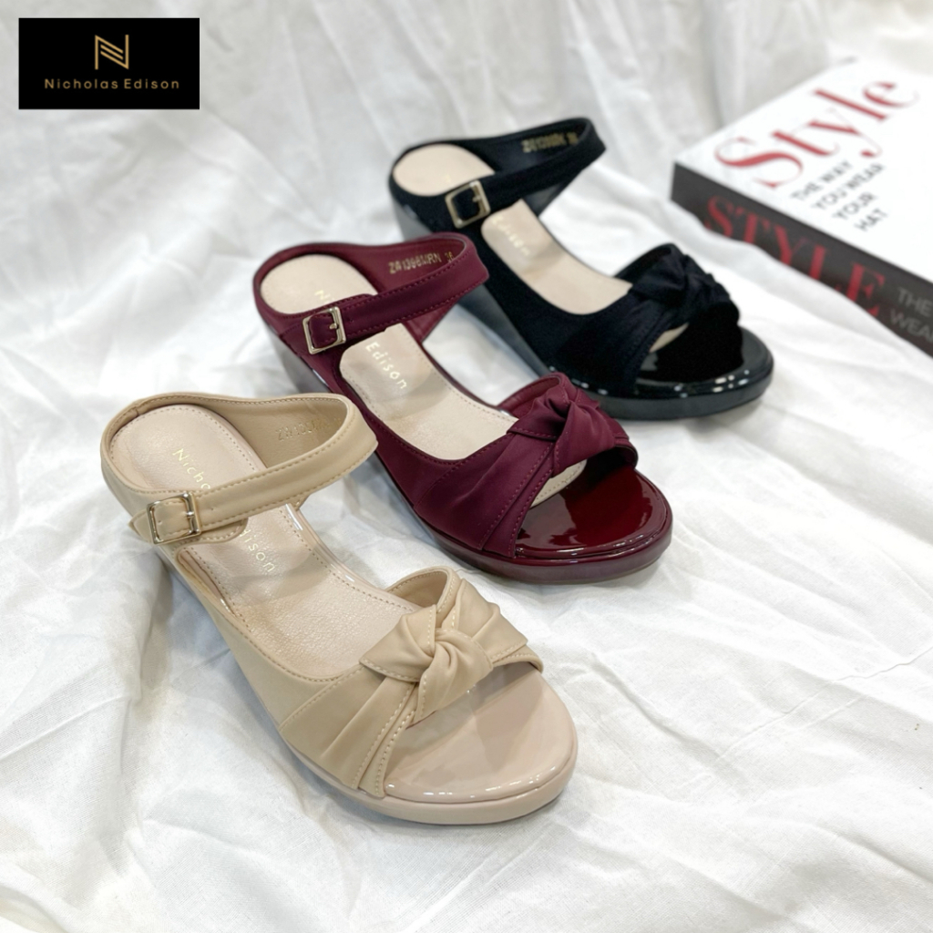 Nicholas Edison Wedge Elina Sandal Wedges slip on Casual Terbaru