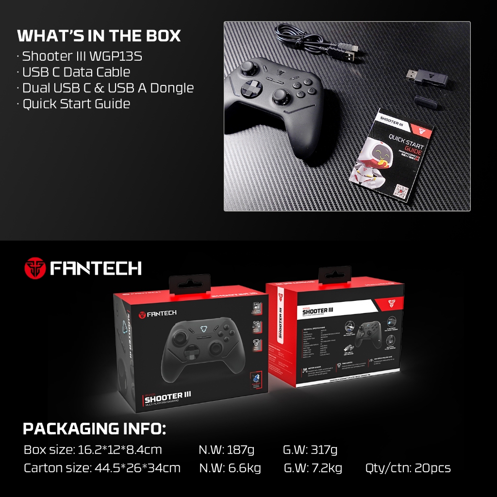 Fantech Shooter III WGP13S Gamepad Wireless Android PC PS Gaming Controller Joystick Stick USB Type C