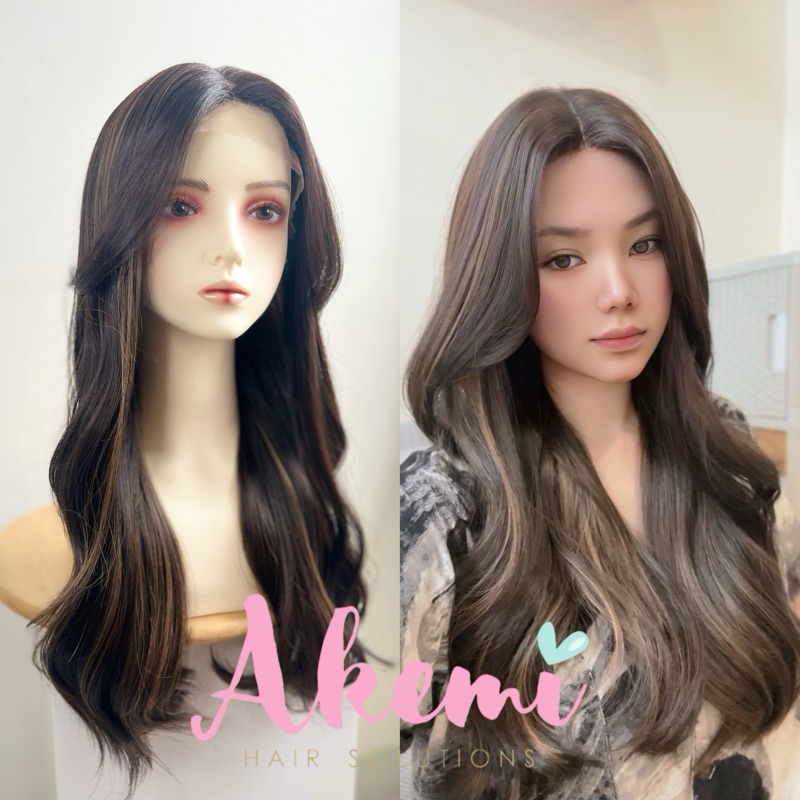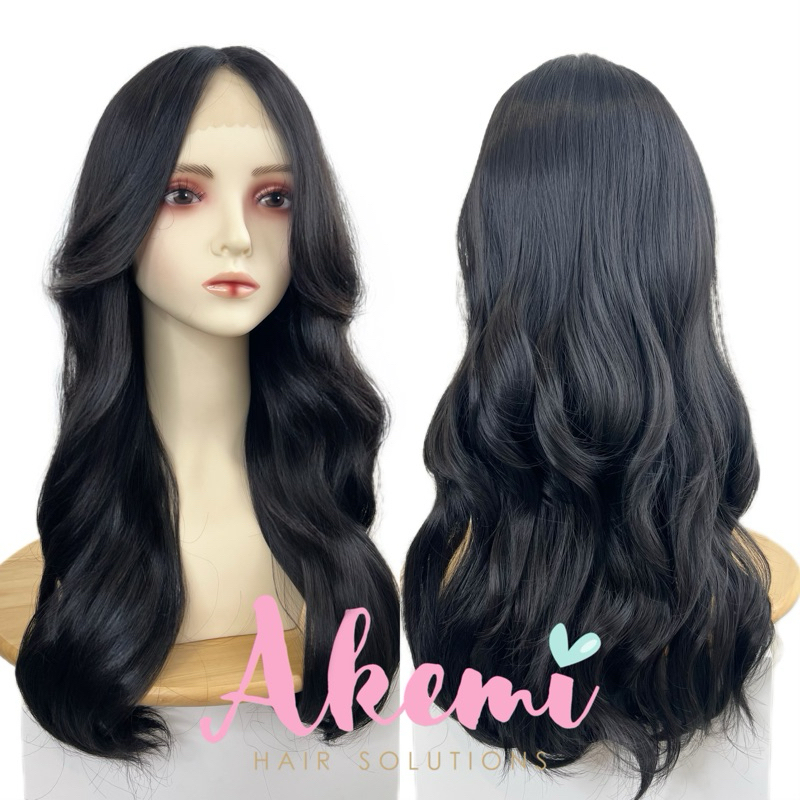 LACE FRONT WIG AKEMI - CURTAIN BANGS WAVY 60cm [ Rambut Palsu Wanita Panjang Bergelombang Wig Natural Wave Marcellashair