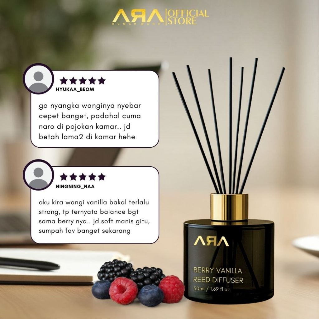 Reed Diffuser BERRY VANILLA 100 PERSEN Natural Essential Oil Tahan Lama Pengharum Ruangan ARA