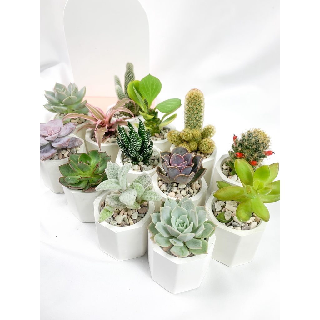 SUKULEN HEXAGON MINIMALIST (BISA BELI SATUAN) BAHAN POT GYPSUM DAN SEMEN PUTIH DIAMETER 5 CM Tanaman Hias Hidup