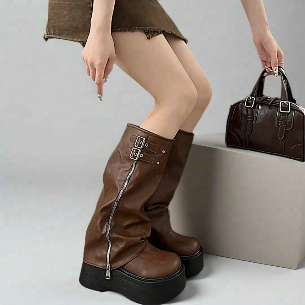 ✅PINKEY P360 Boots/Sepatu Winter Overknee Leather Kulit Fashion Wanita